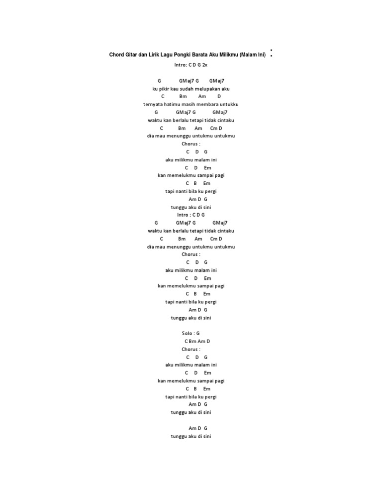 Chord lagu aku milikmu malam ini pongki barata. 8605 views added to favorites 422 times. Lagu Aku Milikmu Malam Ini ini merupakan lagu yang diciptakan oleh Pongki sendiri. Chord Gitar Aku Milikmu Malam Ini - Pongki Barata Sangat Mudah Dimainkan.