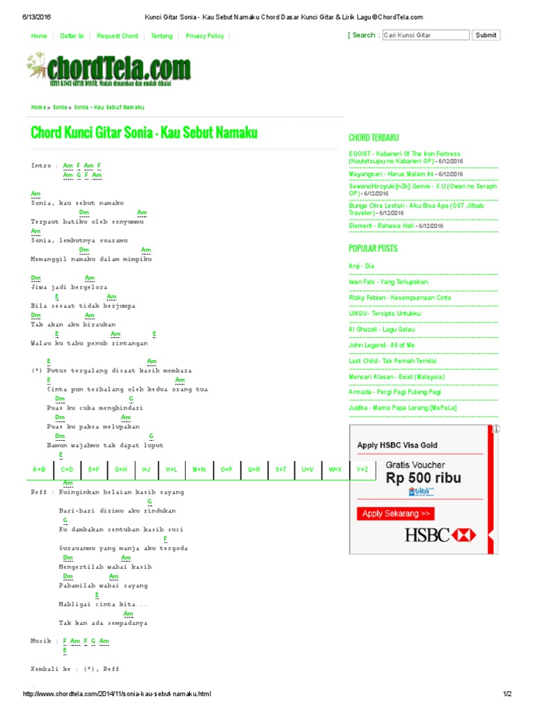 Chord Kunci Gitar Sonia Gaun Merah Blog Dimas