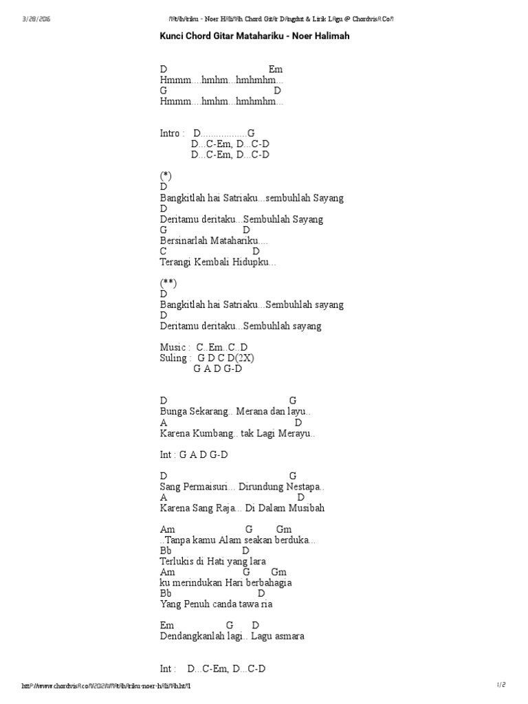 Matahariku Noer Halimah Chord Gitar Dangdut Lirik Lagu At Chordvisa Pdf