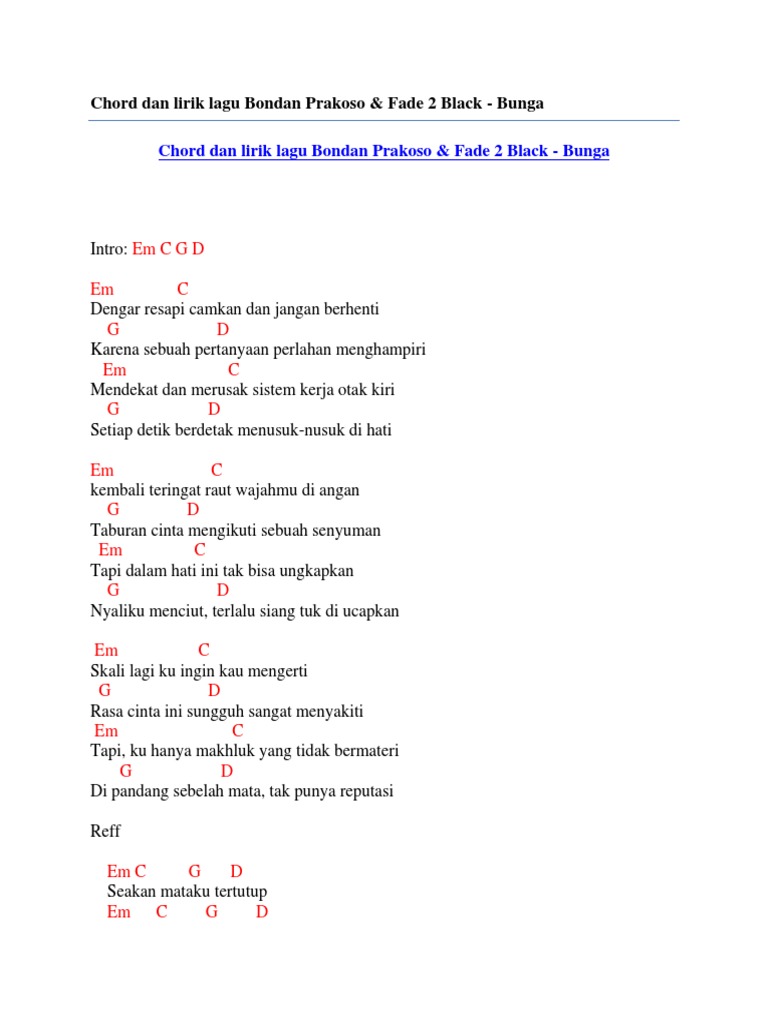 Chord Bondan Prakoso Bunga Chord Lagu Blog